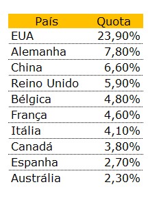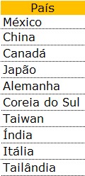 Mas quem são os países que exportam carros para os Estados Unidos? Serão os seus inimigos figadais, a China e a Rússia? Na verdade não. São os seus amigos e aliados (que na terminologia norte-americana significa, em geral, os países ocupados pelas suas bases militares ou derrotados em sucessivas guerras).
