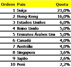 No entanto, quando olhamos para os maiores exportadores e importadores mundiais de ouro temos um conjunto de países totalmente diferente. Desde logo a Suíça domina uma fatia enorme deste mercado, sem que seja sequer produtora.