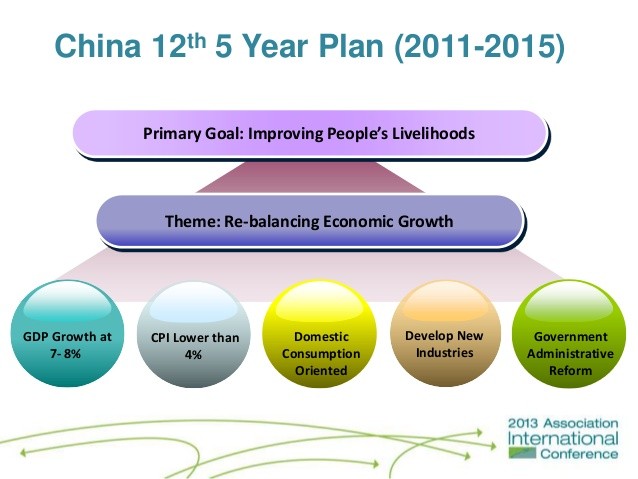 Em curso está o XIII Plano Quinquenal, que abrange o período de 2016 a 2020 e prevê a conclusão da etapa de construção de uma “sociedade moderadamente próspera em todas as áreas” (Chinese Communist Party, 2016).