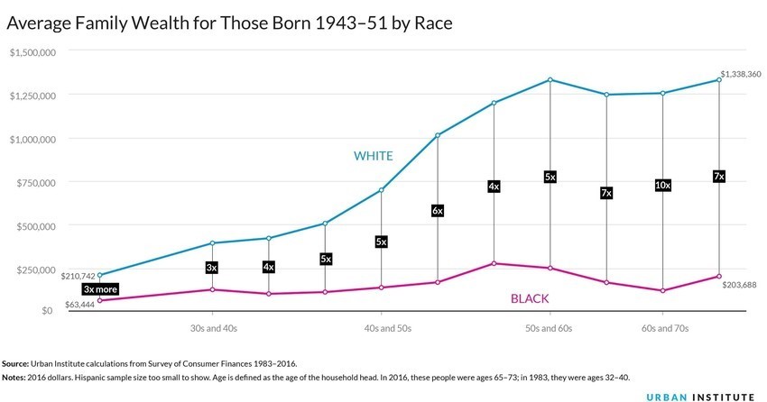 O fosso entre as famílias brancas e as negras tem vindo a alargar-se nos Estados Unidos. Se no início do século XX esse fosso era de 3, isto é, as famílias brancas dispunham de um património três vezes superior ao das famílias negras, atualmente esse ratio é de sete vezes em termos médios. E a tendência será para continuar a alargar-se, uma vez que os mais ricos podem dar melhor futuro aos seus filhos enquanto os que não têm património ou este é muito baixo não podem assegurar nada aos seus descendentes.